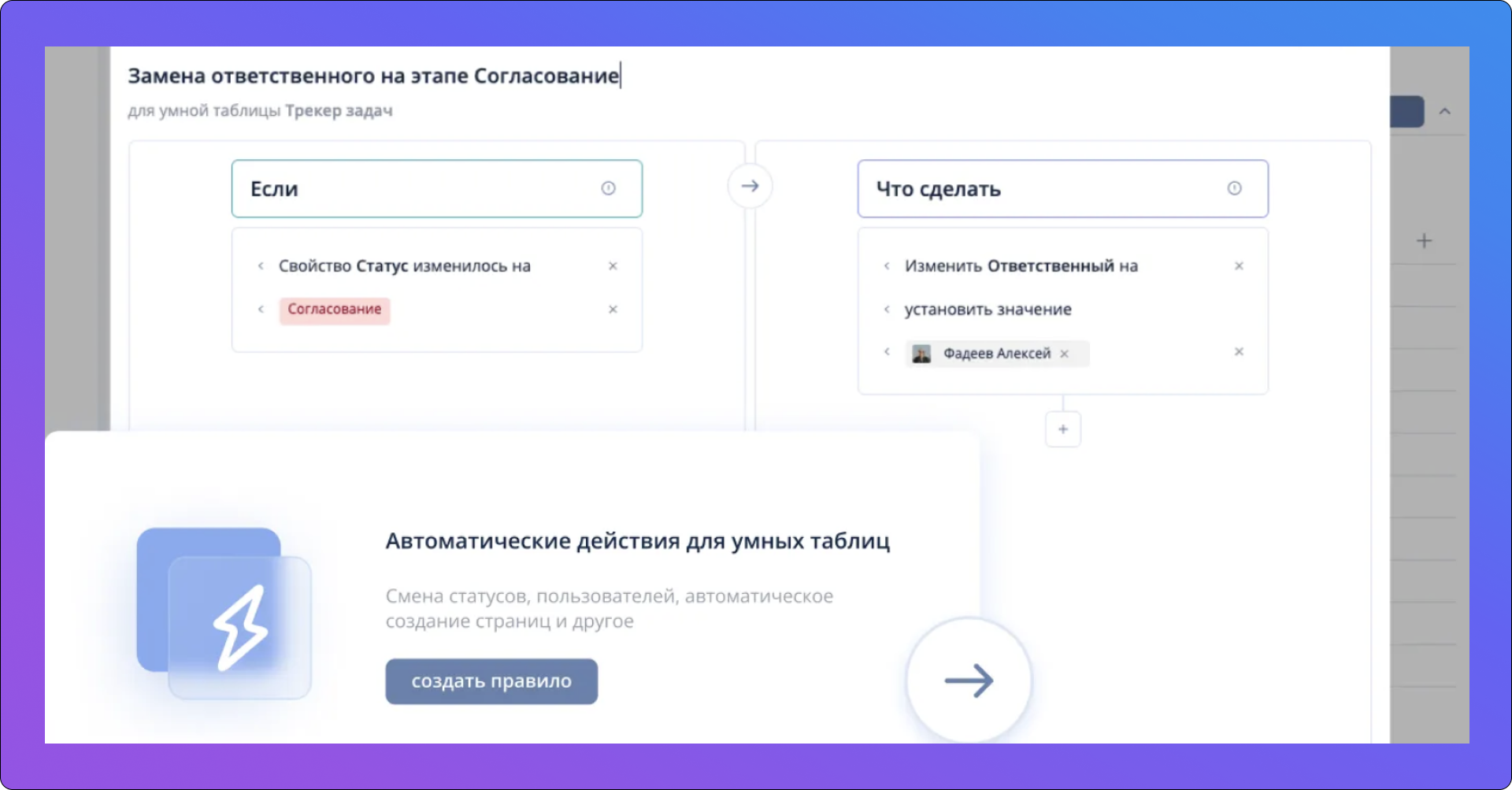 Автоматизация через «Создать правило»: при появлении просрочки карточка автоматически получает тег блокера и сигнал тимлиду.