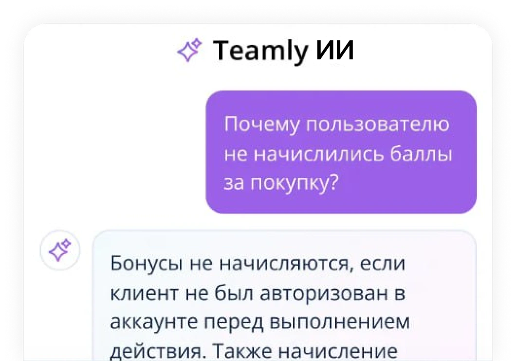 AI-ассистент использует только материалы базы знаний TEAMLY: статьи, рабочие документы, умные таблицы. Он не обращается к внешним источникам и не придумывает факты.